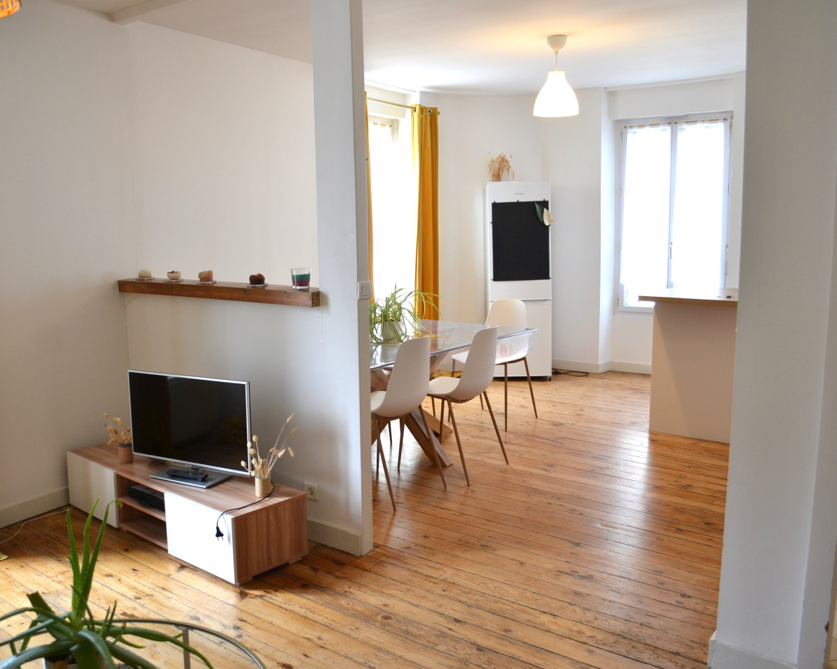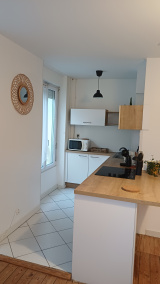 Appartement meublé situé au 1er étage d'un bâtiment ancien au coeur de MORGAT, comprenant une pièce de vie avec salon -séjour et cuisine aménagée et équipée, 2 chambres et une salle de douche avec WC.