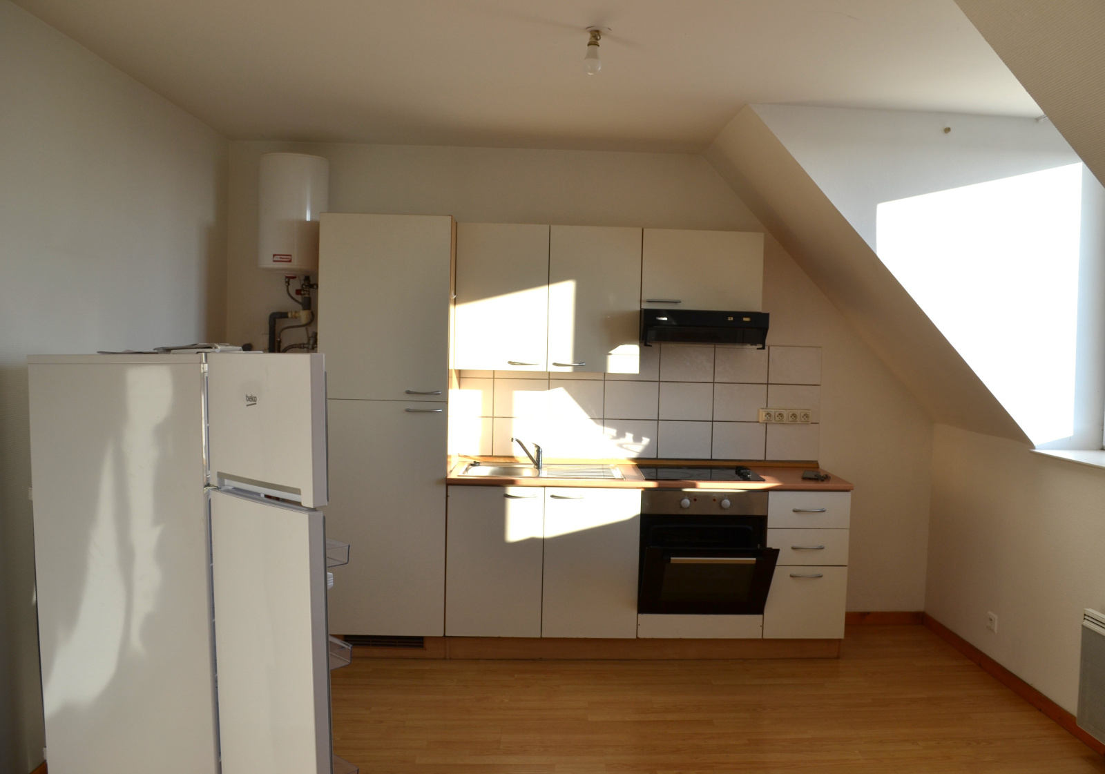 Près du centre bourg de CROZON, petit duplex au deuxième étage, composé d'une pièce de vie avec kitchenette, salle d'eau avec WC et chambre en mezzanine.