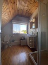A l'étage un palier qui dessert deux chambres, une salle de douche et un placard de rangement.