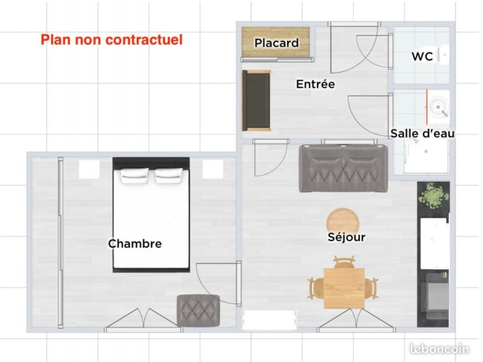 De plain-pied, il se compose d’une entrée, d’une agréable pièce de vie lumineuse avec cuisine aménagée et équipée, d’une spacieuse chambre, d’une salle d’eau et d’un WC indépendant.