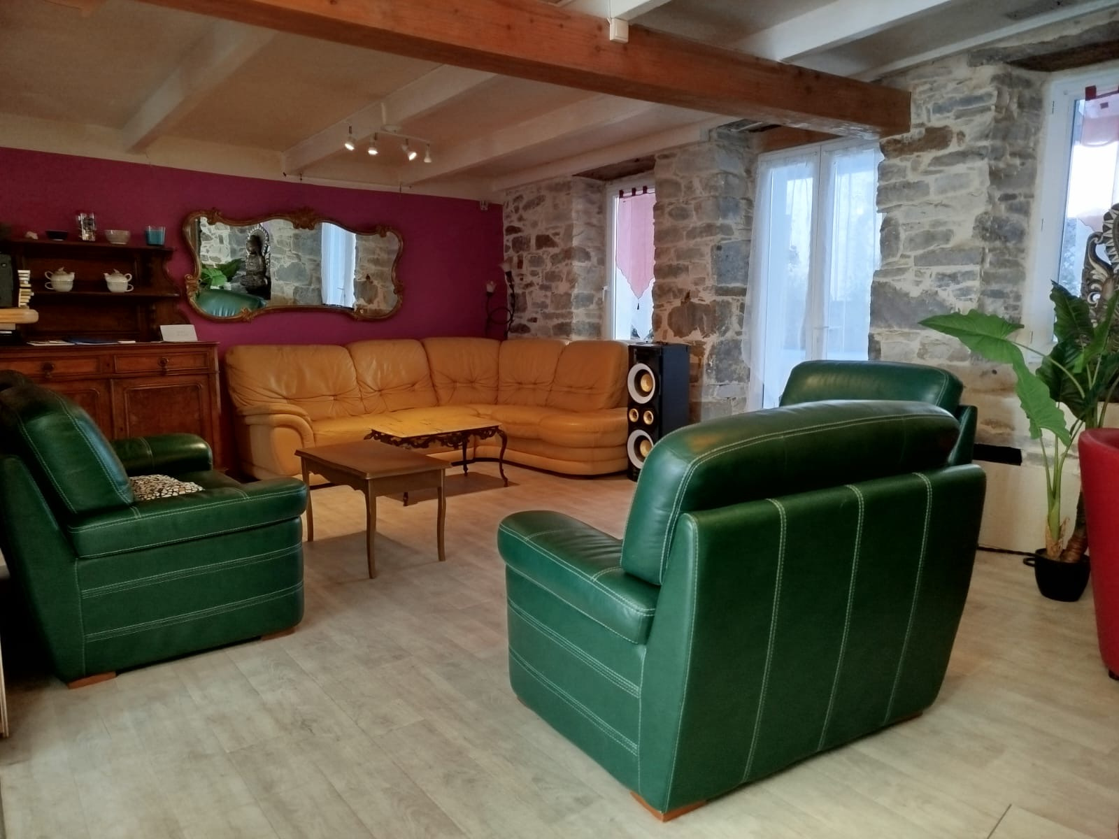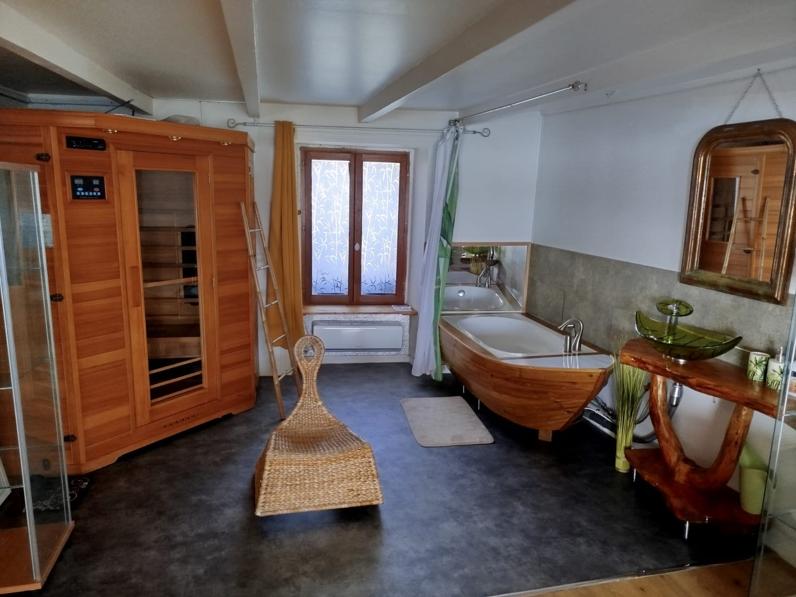 À l'étage, vous trouverez une grande pièce servant de chambre avec salle de bain, une autre chambre,