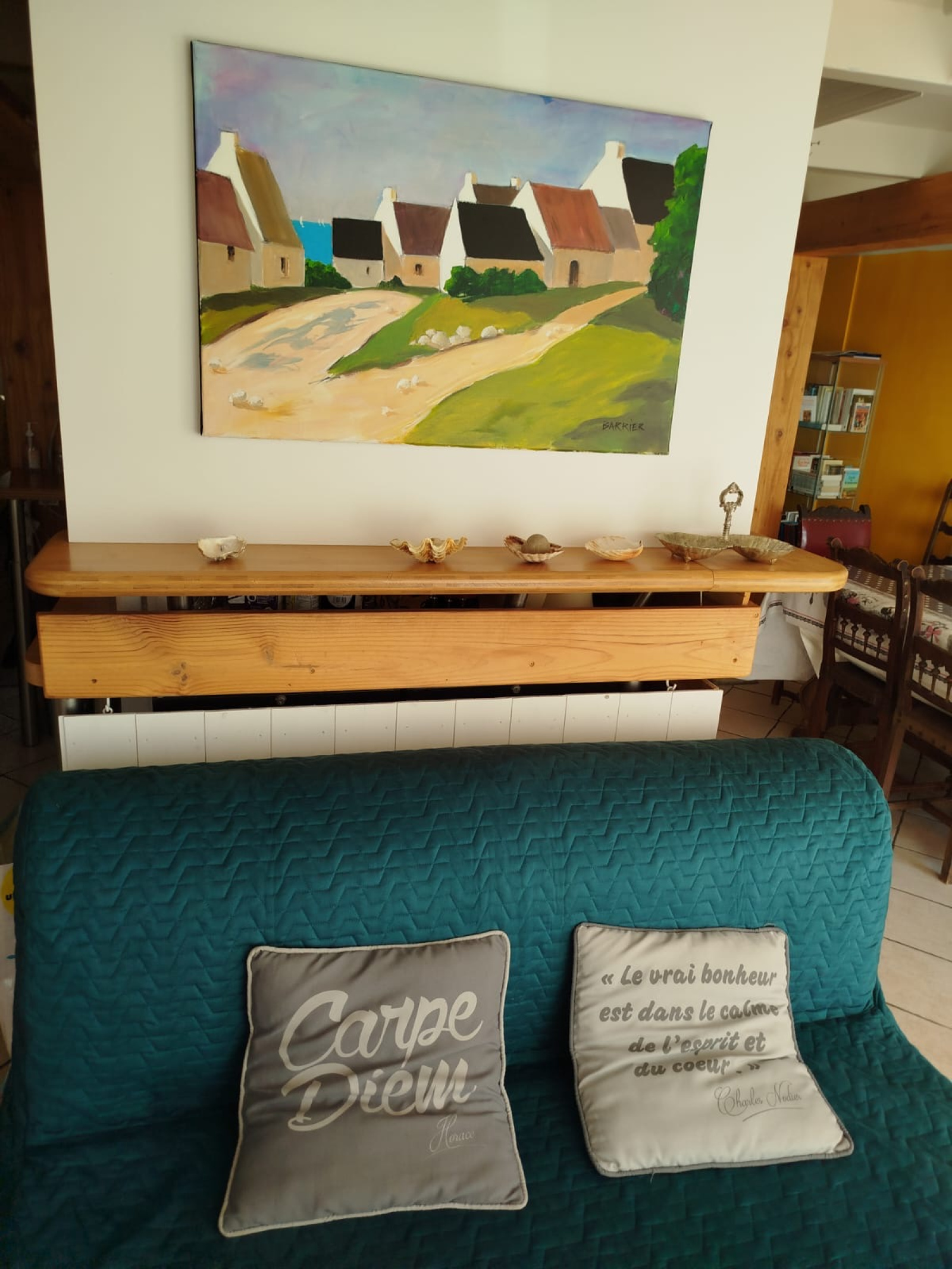 La maison se compose d'une très belle pièce de vie, incluant un salon, une salle à manger et une cuisine, ainsi qu'un poêle à granulés.