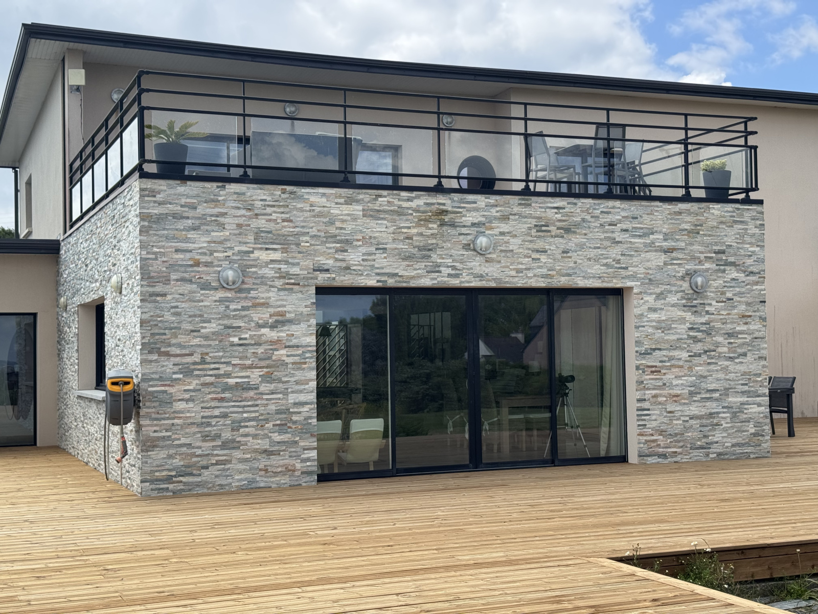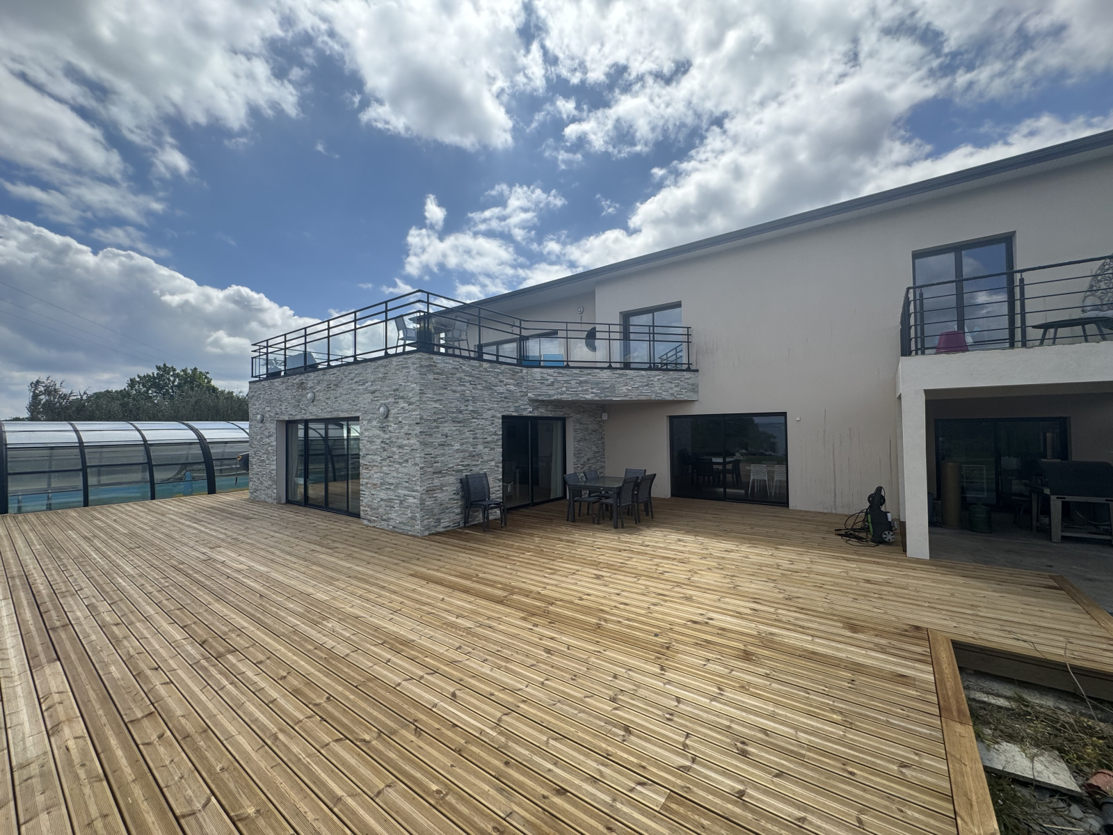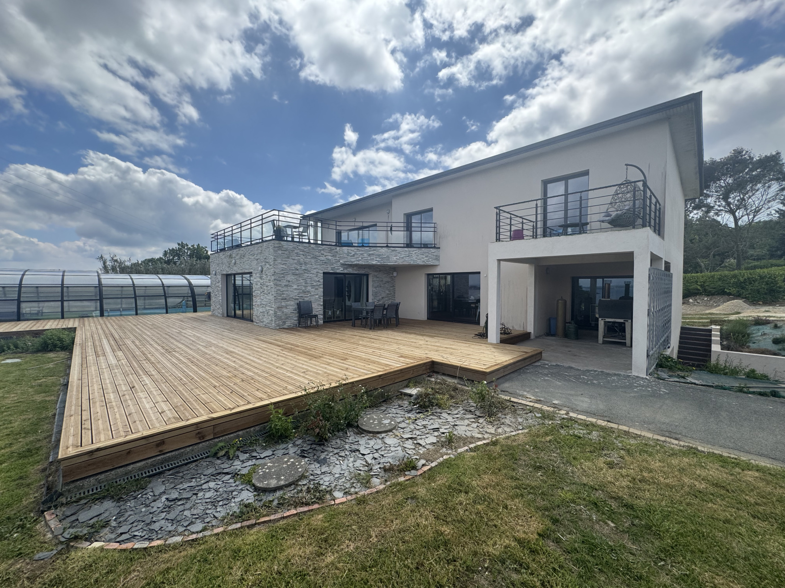 Sur la commune de Roscanvel, face à la rade de Brest, découvrez cette maison contemporaine de 375 m², construite en 2008 sur un terrain paysager de plus de 8 000 m² avec accès à la grève.