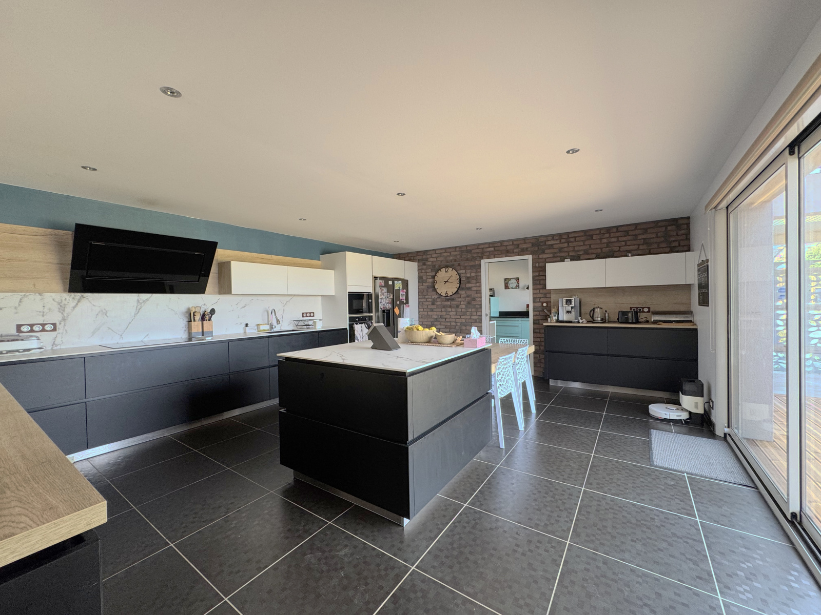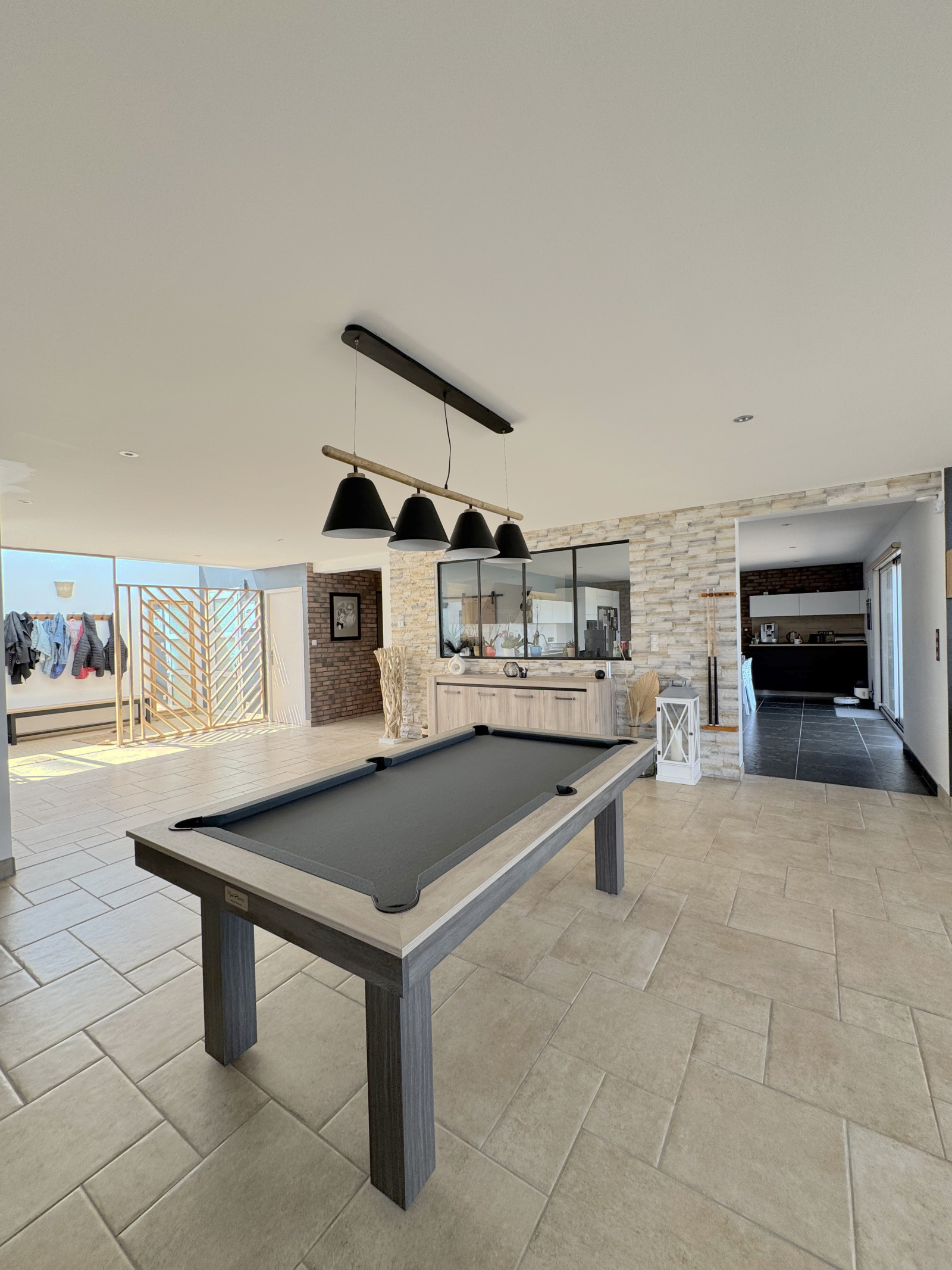 Le rez-de-chaussée s’ouvre sur une vaste pièce de vie lumineuse, offrant une vue panoramique sur l’océan, une cuisine indépendante aménagée et équipée, une arrière-cuisine, une buanderie, ainsi qu’une suite parentale avec douche italienne, baignoire balnéothérapie et dressing.