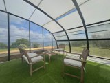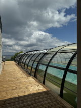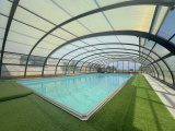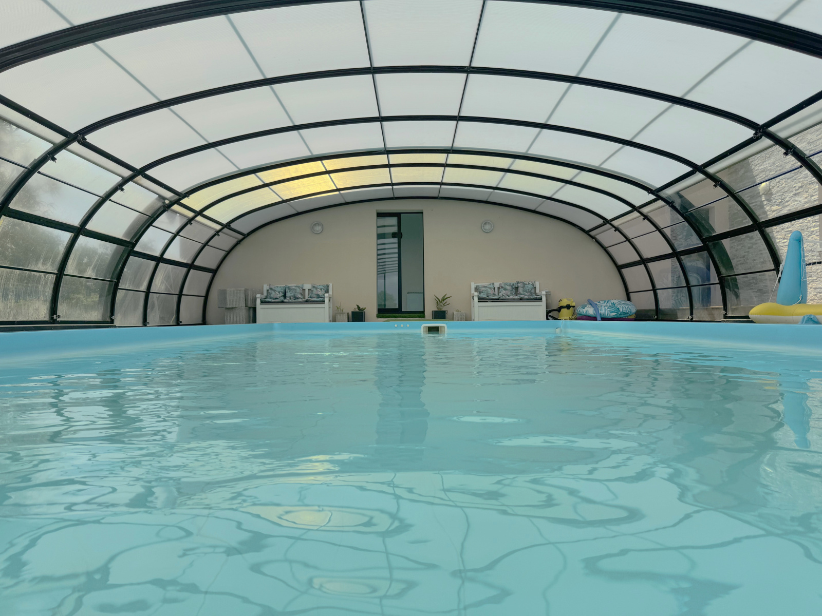 Pour vos moments de détente : une piscine intérieure chauffée sous dôme, avec salle d’eau, WC.