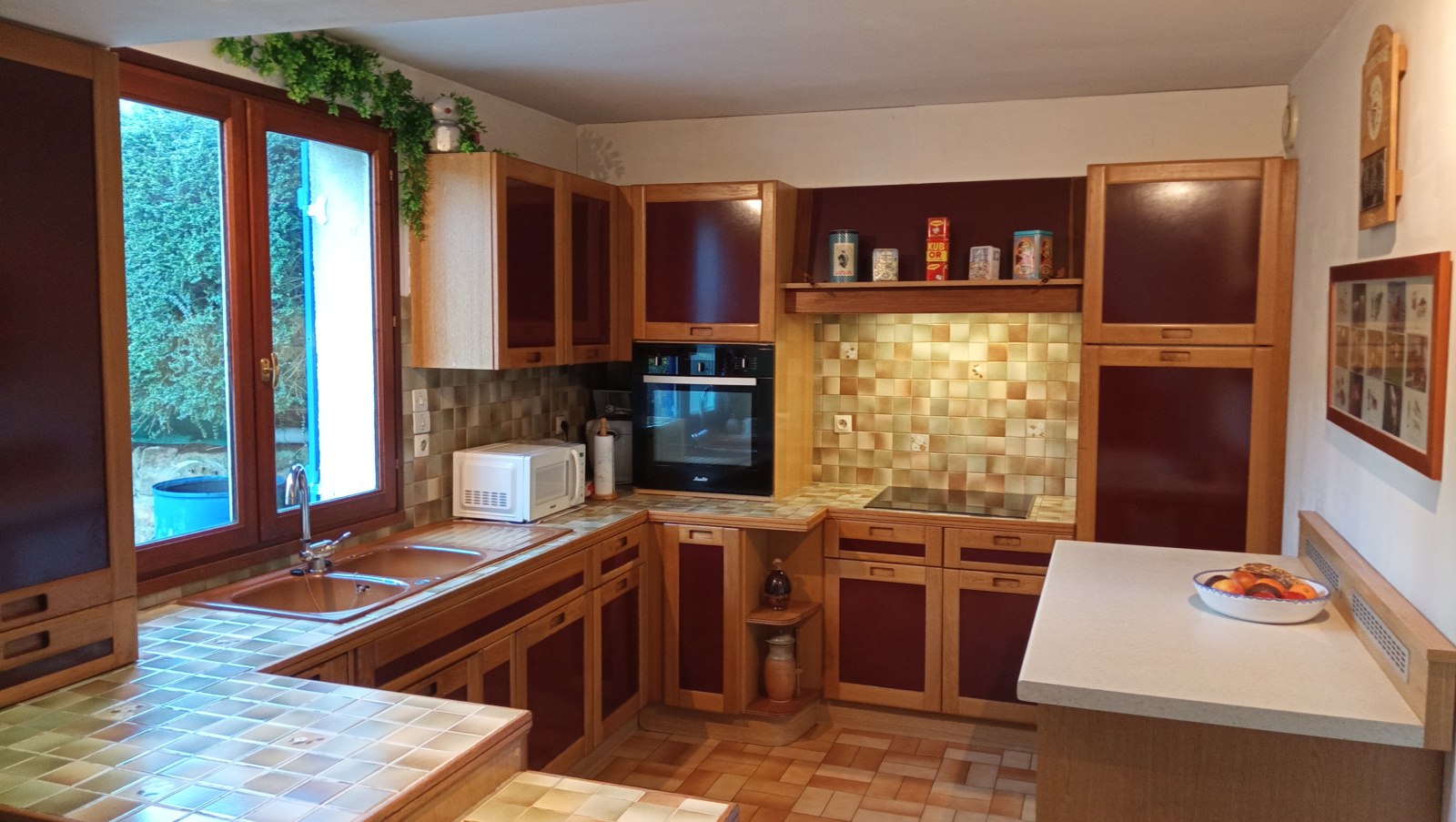 Une cuisine aménagée ouverte sur la salle à manger, idéale pour partager des moments conviviaux,